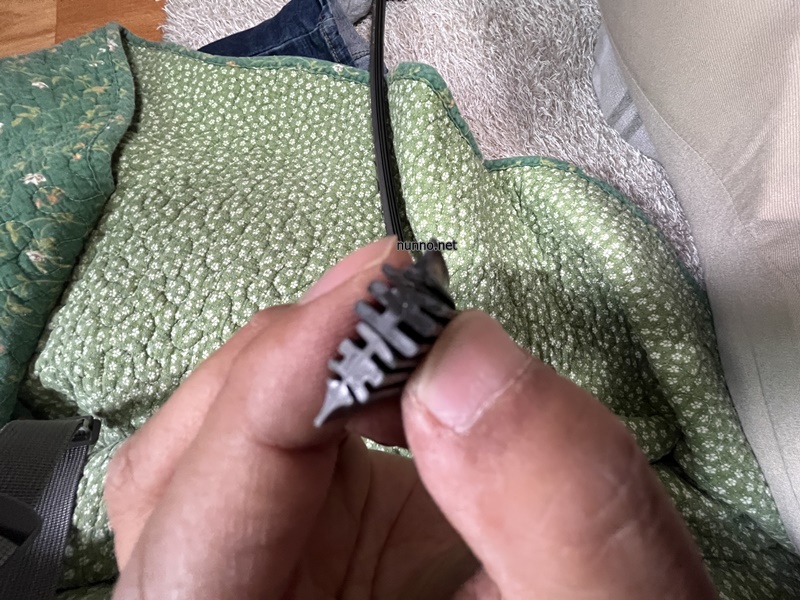판매자는 동영상 까지 올리며 날 교체하는 법을 보여주었으나 왼걸, 저의 경우엔 날 끝으머리에서 고무를 살짝 잡은 후 앞으로 제끼며 당기니 쑥 하고 빠집니다.