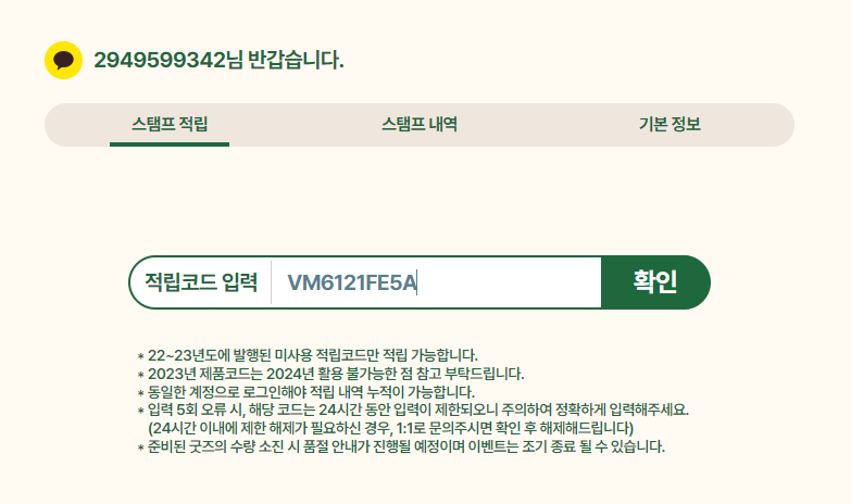 마일리지 사용된 코드를 시럽에서 또 사용 할 수 있어서 중복 참여를 꼭 해주세요.