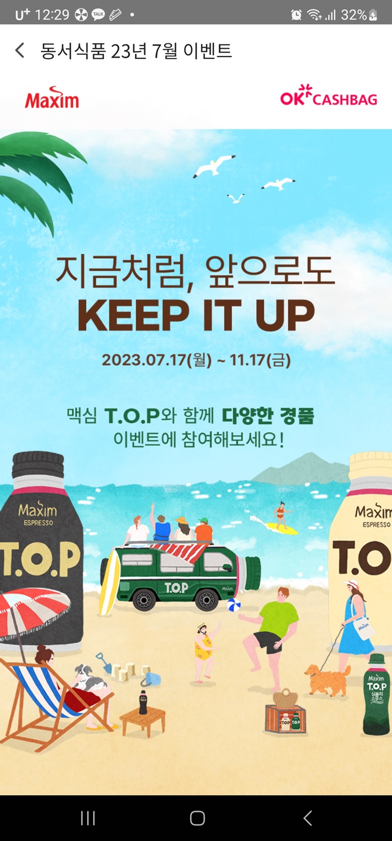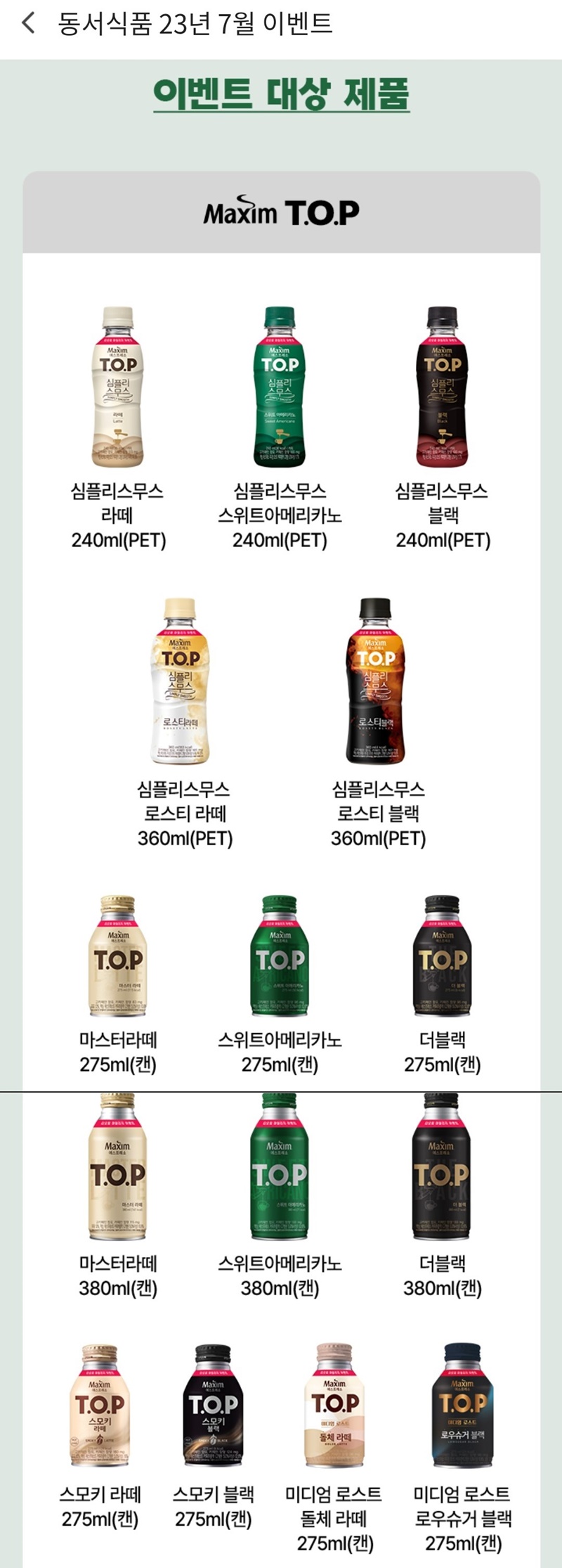 * 이벤트 개요 : 해당 맥심 TOP 제품 구매 후 코드 입력 시 선물 이벤트