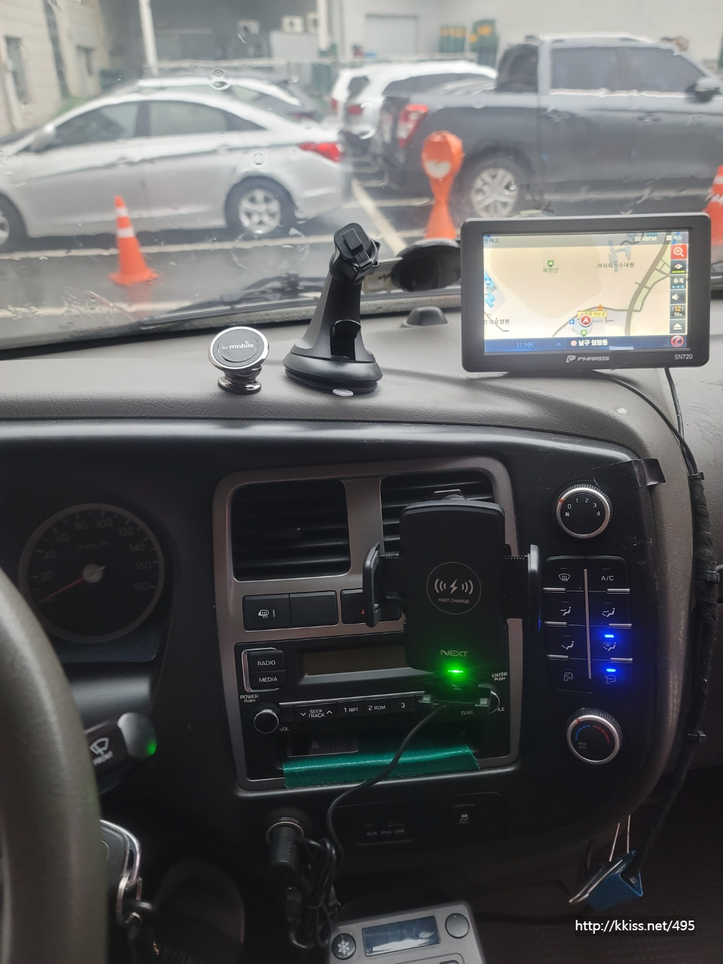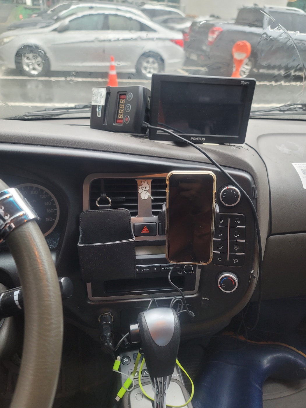 <사진설명 : 휴대폰 거치대가 없는 차량의 휴대폰 사용 상태를 보고 이게 아니다 싶었다!>