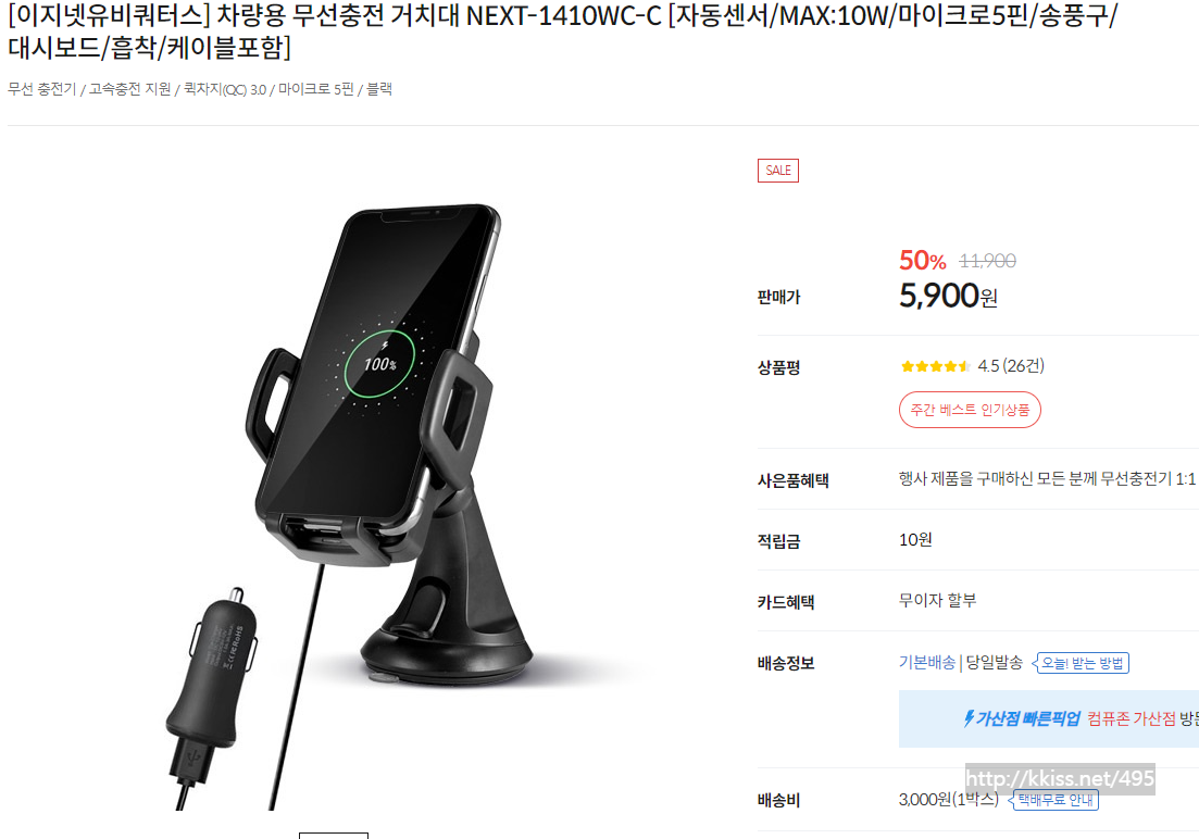 5900원 = 차량 거치대 셋트 + 책상용 무선충전거치대 까지