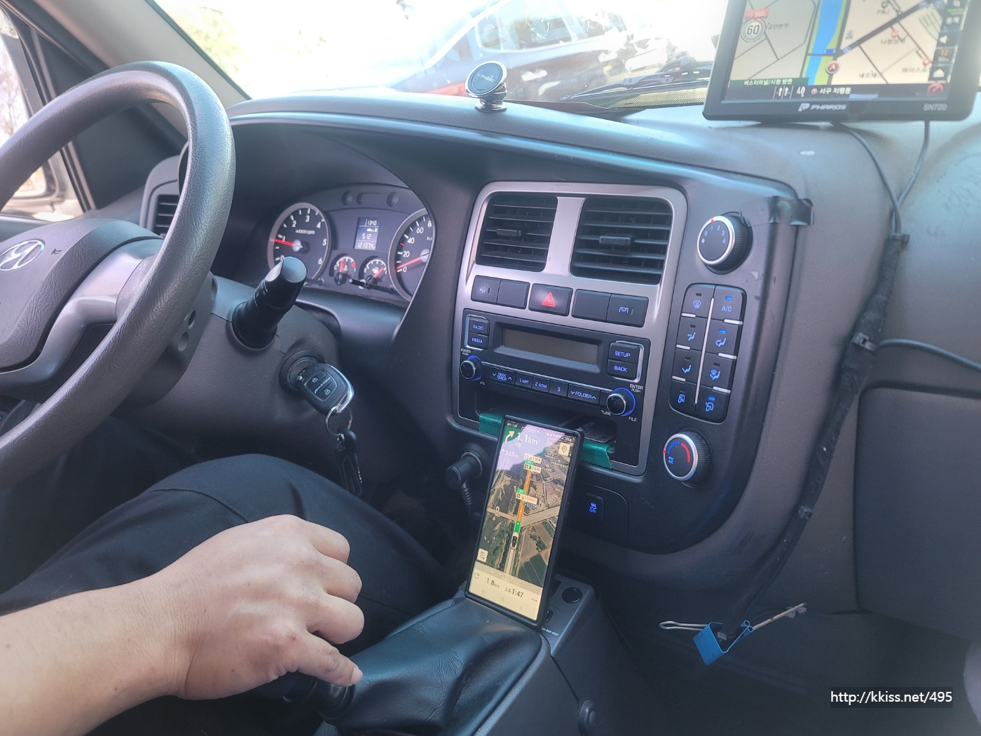 <사진설명 : 휴대폰 거치대가 없는 차량의 휴대폰 사용 상태를 보고 이게 아니다 싶었다!>