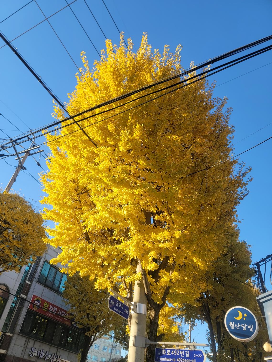 길가 모퉁이에 가장 화려해 보이는 은행나무 였고
