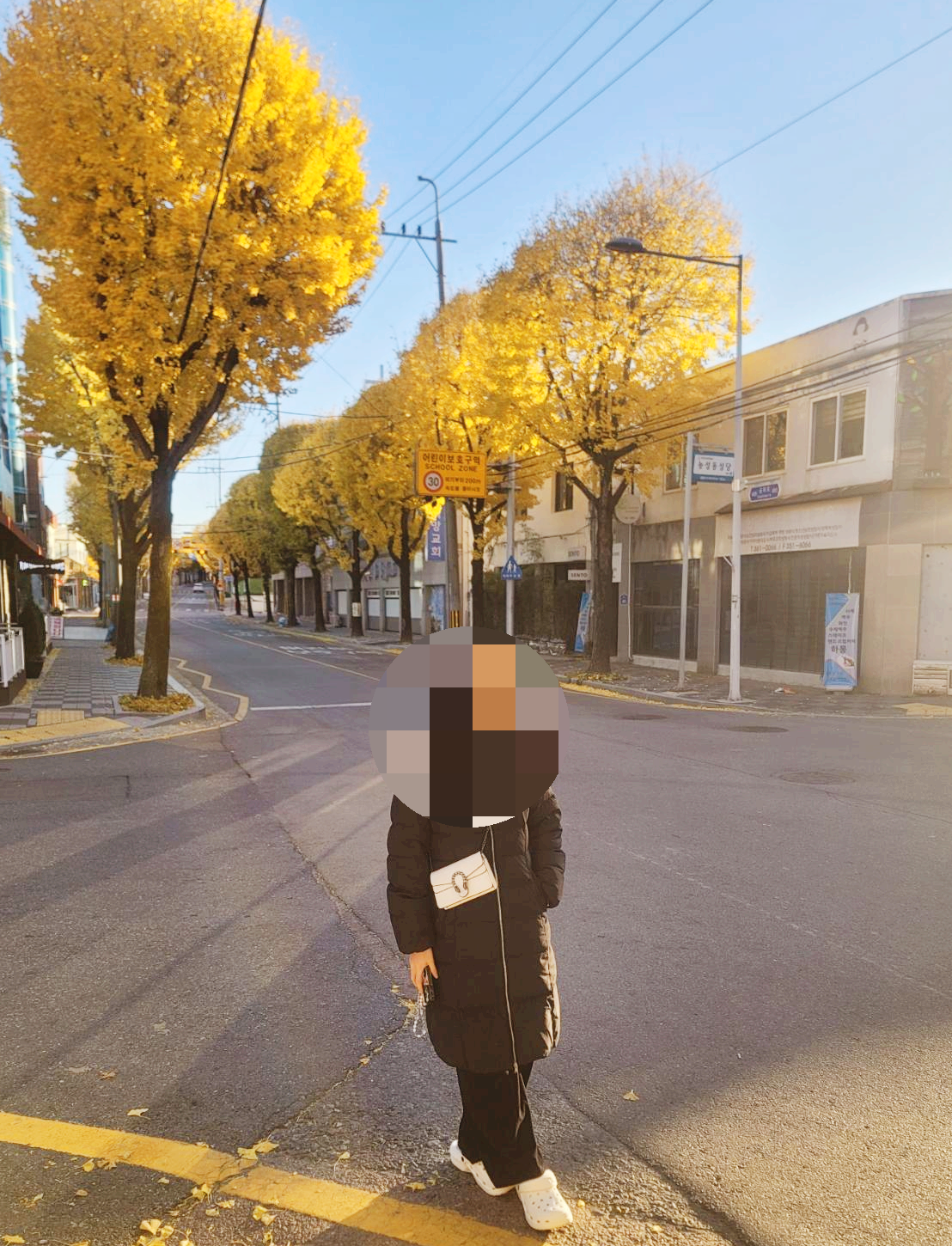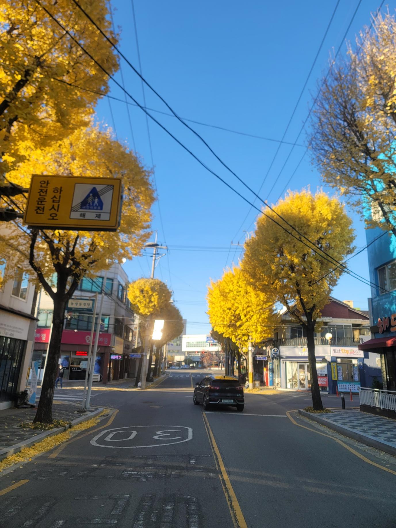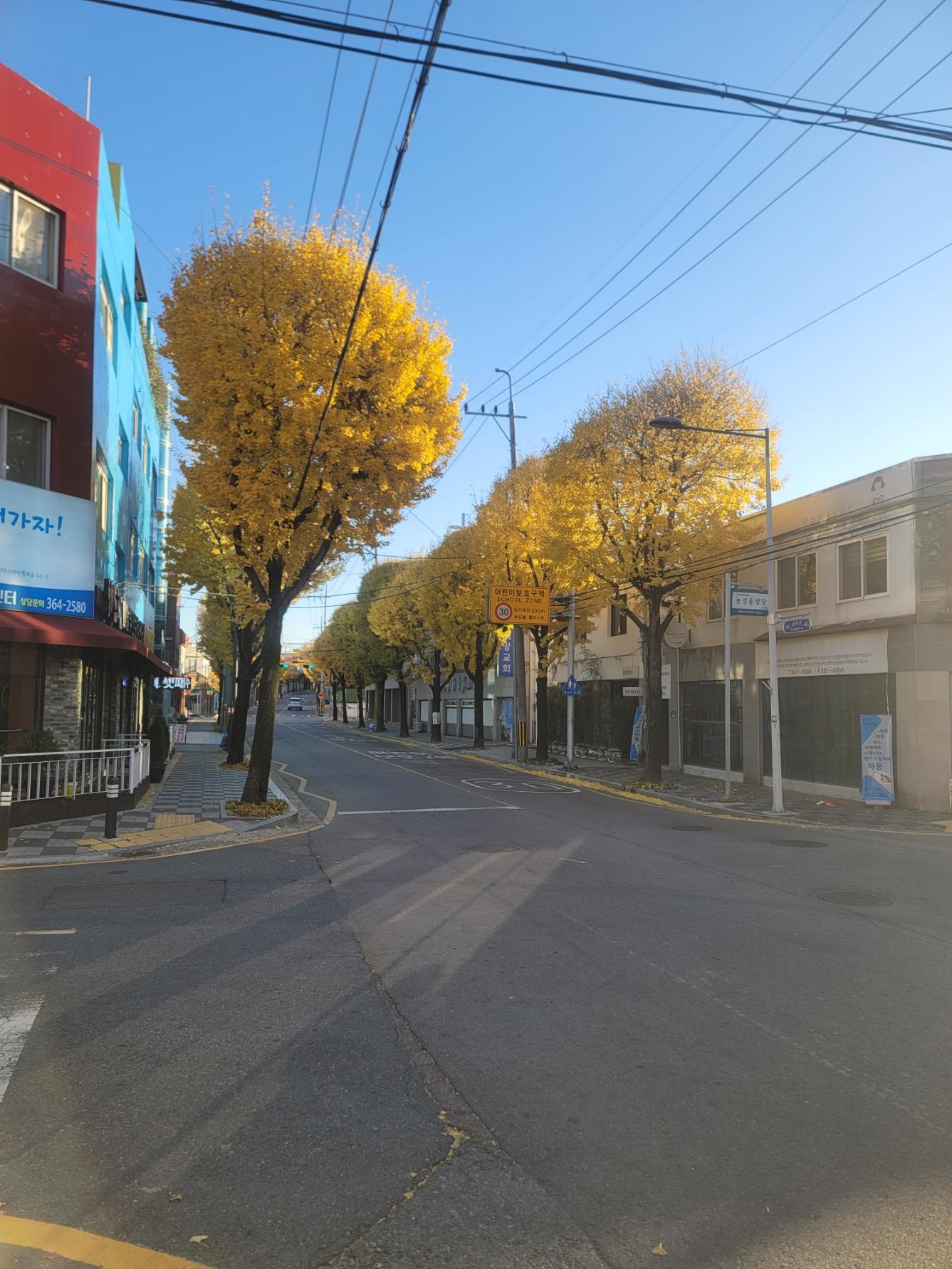 길가 모퉁이에 가장 화려해 보이는 은행나무 였고