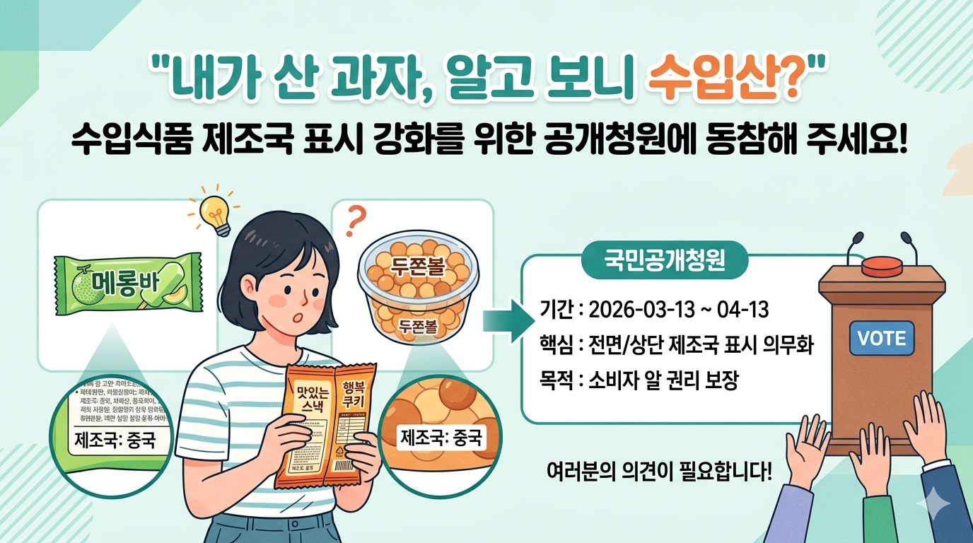 "내가 산 과자, 알고 보니 중국산? 수입식품 제조국 표시 강화를 위한 공개청원에 동참해 주세요